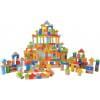 Set blocuri constructie colorate 300, culoare pastel , galeata cu capac decupat cu forme geometrice, figurile geometrice putand fi introduse in galeata in functie de forma lor, dimensiune galeata 22x22x50 cm, 300 elemente.